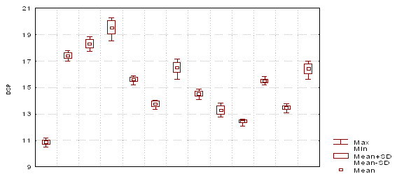 Mean - середня вибірки; Mean±SD - стандартне відхилення середньої; Max Min – максимальні та мінімальні значення вибірки.