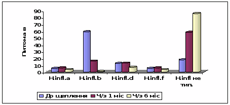 In dissertation first in Ukraine on the example of Kyiv the particle of Hib-meningitises is set in the etiologic structure of the bacteriological deciphered meningitis, staggered of different age-dependent groups, dynamics and seasonality of Hib-meningitis. Certainly, that a risk group in relation to development of Hib-meningitises are children in age from 0 to 2 years. It is statistically well-proven that the insufficient bacteriological decoding of bacterial meningitis is direct-coupled with the underestimation of etiologic role exactly Hib in development of this pathology.