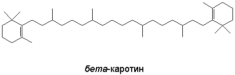 Природный пигмент желтого или оранжевого цвета. По своей химической природе относится к тетратерпенам (С>40>Н>5>). Нерастворим в воде, растворим в жирных маслах, хлороформе, эфире, ацетоне, бензине, трудно растворим в спирте. Неустойчив на воздухе и свету. Каротин легко образует пероксиды, поэтому может окислять различные вещества. |