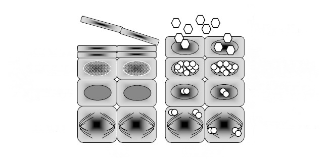Рис. Механізм дії мікродозованих оральних контрацептивів на епітелій, уражений вірусом папіломи людини