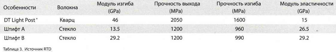 Таблица 3 суммирует различия физических свойств некоторых штифтов