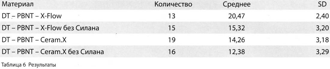 Таблица 5 показывает результаты тестов микроэластичности, где Х- FlowTM имеют лучшие результаты. Это объясняется высоким уровнем пенетрации материала, что обеспечивает отличную адгезию к поверхности штифта.