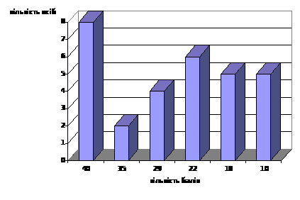 За результатами опитування ми побудували діаграму, яка показує залежність кількості набраних балів від кількості опитаних осіб.