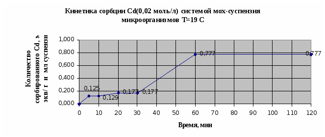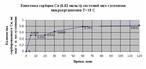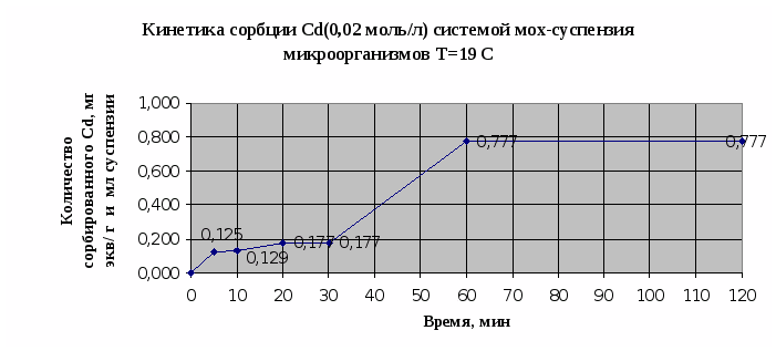 2.1.8. Определение кинетики сорбции металлов микроорганизмами, адсорбированными на мхе
