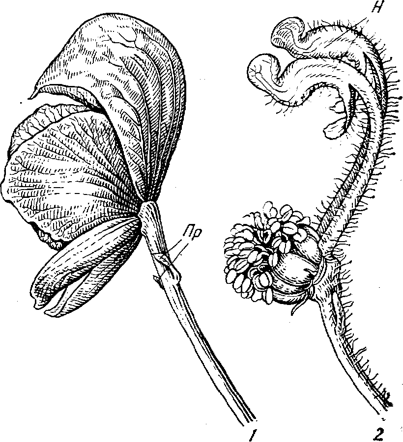 1-- цветок сбоку; 2 - цветок с удаленным околоцветником Пр — предлистья; н — нектарники