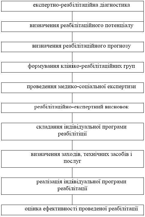 Виконані діагностичні обстеження дозволили розробити етапність здійснення медичної реабілітації спінальних хворих. Так, наявні порушення серцево-судинної, дихальної, травної, імунної та сечовидільної систем потребували відповідної корекції, що становила 1-й етап медичної реабілітації хворих. На цьому етапі здійснювали підготовку хворих до реконструктивних операцій на хребті та спинному мозку. Деформація каналу хребта і компресія спинного мозку заважали проведенню подальших реабілітаційних заходів. Тому на 2-му етапі здійснювали різні види декомпресивно-стабілізуючих оперативних втручань на хребті та відновно-реконструктивних — на спинному мозку. Повторна травма, що неминуче виникає під час оперативного втручання, призводить до набряку, гіпоксії та порушення мікроциркуляції нервових структур. Всі заходи, що спрямовані на зменшення та усунення цих негативних явищ і становили 3-й етап медичної реабілітації. Не в усіх хворих після трьох етапів медичної реабілітіціі спостерігалося відновлення порушених функцій. Тому такі хворі в подальшому потребували довготривалого лікування (медикаментозного, функціональної терапіі та фізіотерапії, протезно-ортопедичної допомоги). Всі ці заходи і становили 4-й етап реабілітації.