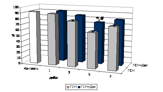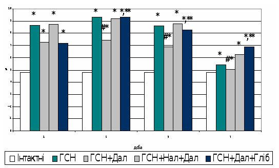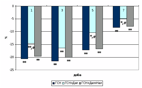 ** - показники достовірні по відношенню до групи ГСН+Дал (р0,05);