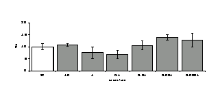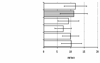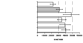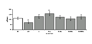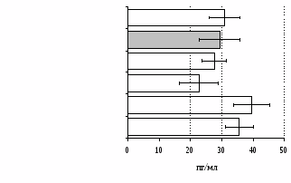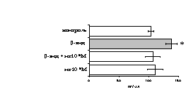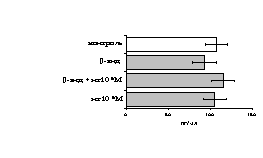 При анализе влияния b-эндорфина на продукцию исследуемых цитокинов мононуклеарами в присутствии ФГА были получены следующие результаты (рис. 21). Во фракции мононуклеаров ФГА, как и ЛПС, усиливает выработку IL-1b и не влияет на уровень IL-8. b-эндорфин стимулирует как спонтанную, так и ФГА-индуцированную продукцию IL-1b мононуклеарами. Уровень IL-8 под воздействием пептида в нестимулированных ФГА пробах не изменяется, а в стимулированных - снижается. Как следует из полученных данных, продукцию цитокинов семейства IL-1 нефракционированными лейкоцитами, нейтрофилами и мононуклеарами (но не очищенными моноцитами) -эндорфин активирует, а продукцию IL-8 угнетает, таким образом, оказывая двоякое действие, с одной стороны, активируя процессы пролиферации и дифференцировки, а, с другой, угнетая хемотаксис. При этом в отличие от IL-1, депрессия IL-8