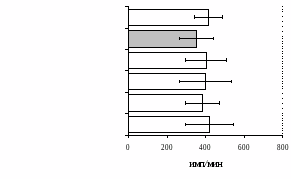 Результаты исследований влияния b-эндорфина на продукцию IL-1 и IL-8 во фракциях мононуклеаров и нейтрофилов представлены на рис. 20. b-эндорфин 10-7М стимулирует спонтанную и ЛПС-индуцированную продукцию IL-1b мононуклеарами. Аналогичная картина наблюдается во фракции нейтрофилов. На фоне LPS наблюдается статистически значимое усиление продукции IL-1b. b-эндорфин 10-7М стимулирует как спонтанную, так и LPS-индуцированную продукцию IL-1b нейтрофилами. ЛПС-индуцированная продукция IL-8 мононуклеарами и нейтрофилами под воздействием b-эндорфина снижается. В культурах без ЛПС пептид уровень IL-8 не изменяет.