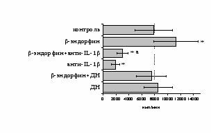 Известно (Panerai, Sacerdote, 1997), что изменение концентрации -эндорфина в головном, спинном мозге и гипофизе часто сочетается с неврологическими и аутоиммунными нарушениями (мигрень, рассеянный склероз, болезнь Крона). Важную роль -эндорфин играет в патогенезе инфекционных заболеваний, модулируя функции клеток адаптивного и естественного звеньев иммунной системы при их контакте с микроорганизмами и вирусами (Ляшев, 2000; Plotnikoff, 1999; Sitte et al., 2007). В связи с этим изучение роли -эндорфина в регуляции иммуногенеза представляет большой интерес.