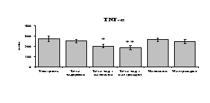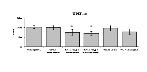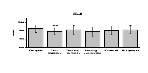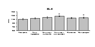 При оценке влияния опиатов на уровень TNF- выявлено угнетение продукции TNF- по сравнению с контролем при совместном внесение в культуры b-эндорфина и антагонистов опиатных рецепторов на 24 и 48 ч культивирования (см. рис. 18). На продукцию IL-6 на 24 ч культивирования b-эндорфин не влияет. На 48 ч культивирования продукцию IL-6 стимулирует налтриндол как при изолированном внесении, так и в комбинации с b-эндорфином. Учитывая, что во фракции лейкоцитов помимо моноцитов, основных продуцентов провоспалительных цитокинов, присутствуют гранулоциты, преимущественно нейтрофилы (Abraham et al., 2003; Fujiharaa et al., 2003; Xing, Remick, 2004), так же способные продуцировать IL-1 и IL-8, мы