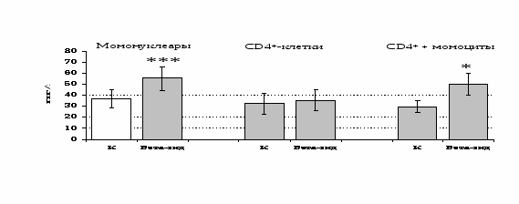 3. Клетки моноцитарно-макрофагального ряда играют важную регуляторную роль в направленности эффектов -эндорфина в отношении функциональной активности CD4+ лимфоцитов.