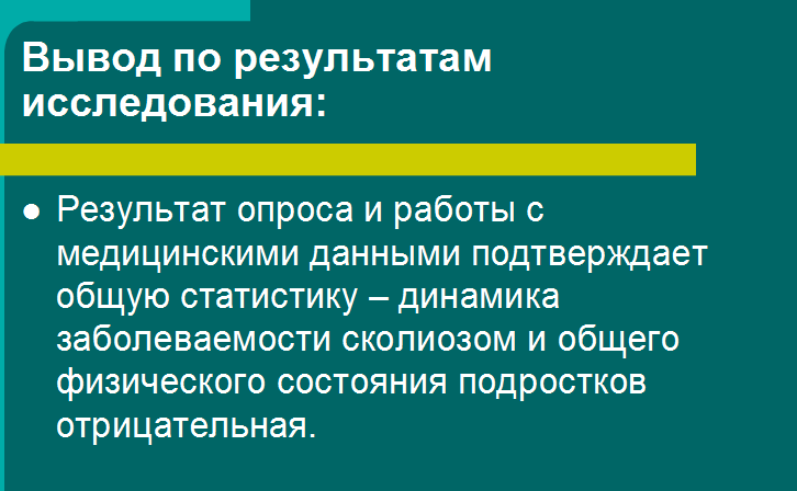 Ну, по результатам мед. Данных, опросов, сравнительных характеристик, да в общем-то по всем результатам динамика отрицательная. С каждым годом ухудшается картина нашего здоровья, количество болеющих сколиозом растет, да и общее физическое состояние подростков ухудшается.