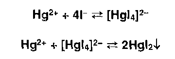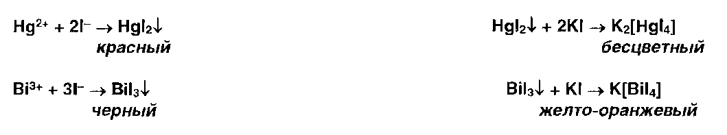 Ионы ртути (II) и висмута (III) осаждаются йодидами, осадки растворяются в избытке реактивов: