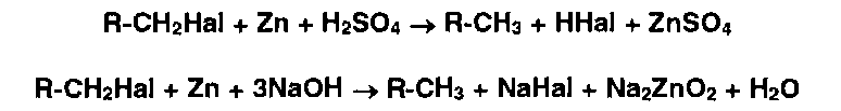 Галогенсодержащие соединения под действием цинковой пыли в кислой или щелочной среде образуют галогениды: