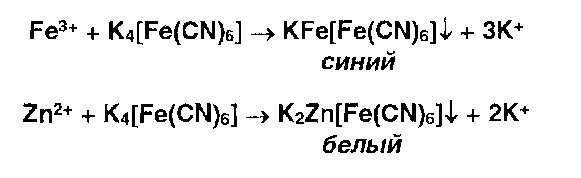 Ионы железа (III) и цинка осаждаются растворами гсксацианоферрата (II) калия: