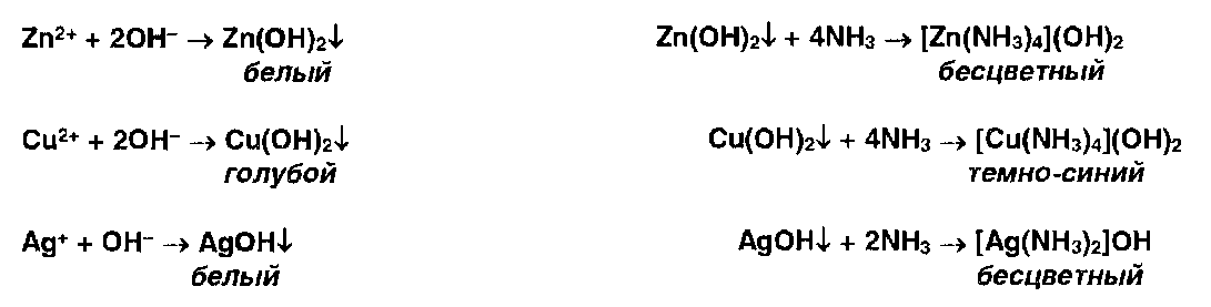 Ионы цинка, меди и серебра осаждаются гидроксидом аммония с образованием осадков, растворимых в избытке г г-ктива: