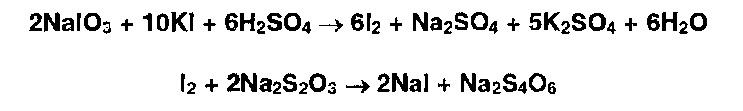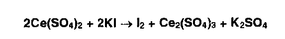 Выдерживают 5 мин в темном месте после добавления йодида калия и раствора серной кислоты, а затем титруют выделившийся йод, содержание которого эквивалентно его количеству в испытуемом ЛВ:
