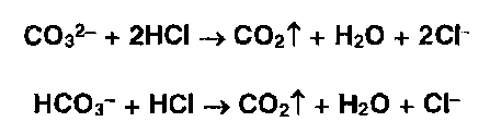 Карбонат- и гидрокарбонат-ионы образуют газ — диоксид углерода под действием минеральных кислот: