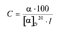 где а — измеренный угол вращения, в градусах; / — длина рабочего слоя кюветы, в дециметрах; С — концентрация раствора вещества (г/100 мл).