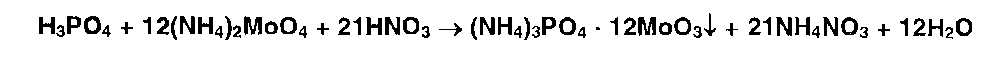 Фосфат-ионы образуют с раствором молибдата аммония желтый осадок фосфор-молибдата аммония: