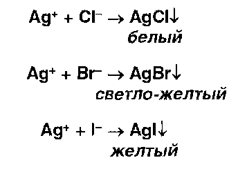 Ионы серебра образуют осадки с хлоридами, бромидами, йодидами: