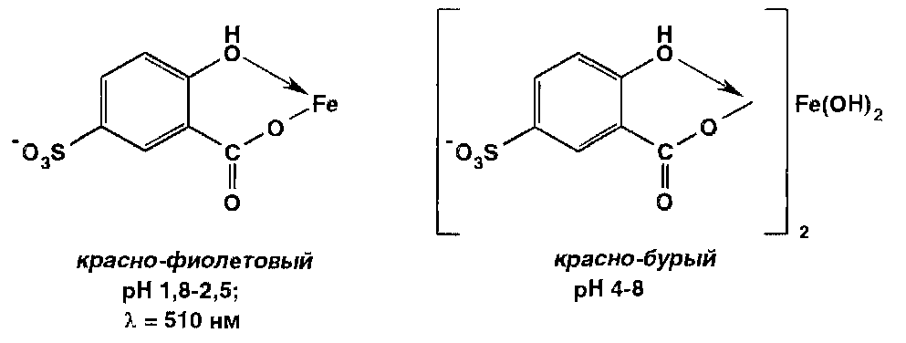 Ионы железа (III) в растворе приобретают красное окрашивание в присутствии роданид-ионов, образуя малодис- социирующее соединение: