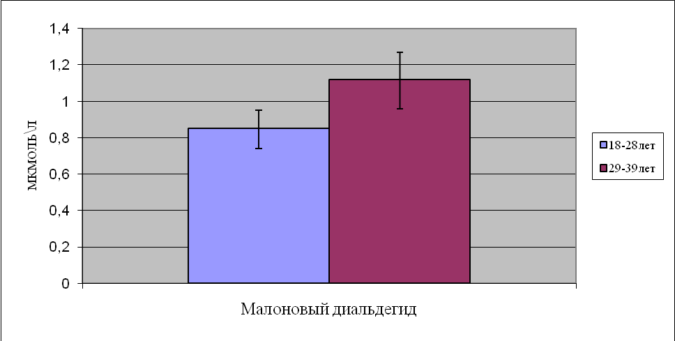 2. Содержание малонового диальдегида в плазме крови небеременных женщин составило 0,64-1,28 мкмоль/л.