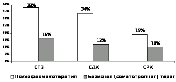 20 Здесь и далее приводится доля (в %) от числа больных с установленным диагнозом соматического заболевания при каждом из рассматриваемых ОН.