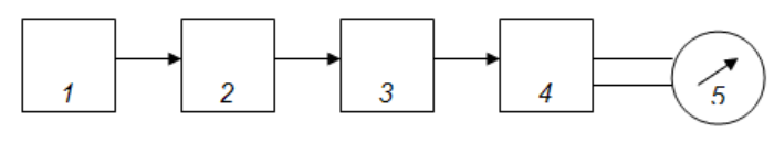 Рис .1 Основные узлы приборов для измерения поглощения излучения: 1 - источник излучения; 2 - монохроматор; 3 - кюветы для растворов; 4 - преобразователь; 5 - индикатор сигнала.