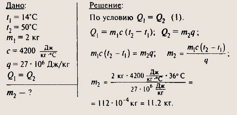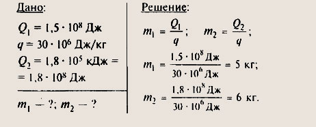 массу полена и его удельную теплоемкость q (в таблице). Тогда Q = m • q. Решаются аналогично №1035.