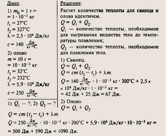 у 1 кг: ртути — на 1 • 104 Дж; свинца — на 2,5 • 104 Дж;