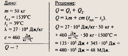 чугуна равных масс взятых при температуре плавления, так как удельная теплота