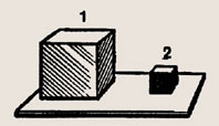 На рисунке 47 изображены два кубика одинаковой массы: один (1) из янтаря, другой (2) из меди. У какого из кубиков масса вещества в объеме 1 см3 больше и во сколько раз?