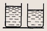 В один из двух одинаковых сосудов налили воду (левый сосуд), в другой — раствор серной кислоты (рис. 49) равной массы. Какая жидкость имеет большую плотность? На основании чего вы делаете вывод?