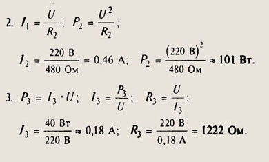 тоже больше (в 4 раза), чем в лампах 2 и 3. P2 = I2U2 P = I U Р2 = 2А - 12В