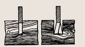 Зубья пилы разводят в разные стороны от плоскости пилы. На рисунке 102 показаны пропилы, сделанные неразведенной и разведенной пилами, Какой пилой труднее пилить: разведенной или неразведенной? Почему?