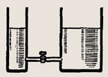 Уровень воды в сосудах одинаковый (рис. 135). Будет ли переливаться вода из одного сосуда в другой, если открыть кран?