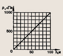Определите по графику (рис. 140) глубину погружения тела в озеро, соответствующую давлению воды 100, 300 и 500 кПа.