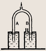 Почему при откачивании воздуха вода поднимается в трубке В, а не в трубке А (рис. 151)?