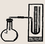 Больше или меньше атмосферного давления давление газа в сосуде (рис. 165)? Какова разница в давлении между газом в сосуде и наружным воздухом, если разность уровней ртути в манометре равна 7 мм?