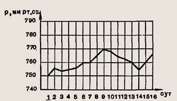 В один и тот же час в течение нескольких суток учащиеся одной из школ Санкт-Петербурга отмечали атмосферное давление и по полученным данным построили кривую суточного изменения давления (рис. 167). Сколько дней велся учет давления? Какое самое малое давление было отмечено? Каким было самое большое давление? (Выразите эти давления в гектопаскалях.) Сколько дней давление было выше нормального? На сколько изменилось давление между седьмыми и восьмыми сутками?