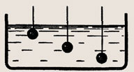 В сосуд погружены три железных шарика равных объемов (рис. 184). Одинаковы ли силы, выталкивающие шарики? (Плотность жидкости вследствие ничтожной сжимаемости на любой глубине считать одинаковой.)
