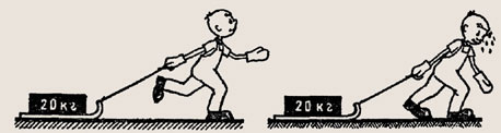 Одинаковую ли работу совершают мальчики (рис. 196) при равномерном перемещении саней на одном и том же пути?