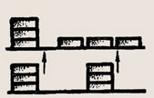 На одном горизонтальном уровне стоят две стопки из трех одинаковых кирпичей (рис. 197, внизу). Кирпичи равномерно поднимают и кладут на доску так, как показано на рисунке 197 (вверху). Одинаковую ли при этом совершают работу?