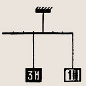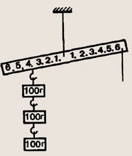 Груз какой массы надо взять, чтобы, подвесив его к правому плечу рычага в точке у цифры 6 (рис. 213), привести рычаг в равновесие?