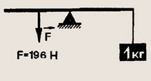 Какая сила должна быть приложена к левому концу рычага в точке А (рис. 209), чтобы рычаг находился в равновесии? (Весом рычага пренебречь.)