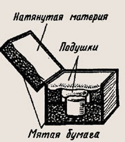 Мальчик сделал термос (рис. 260). Объясните назначение мятой бумаги в крышке ящика, подушек, мятой бумаги, пересыпанной древесными опилками, в нижней части ящика.