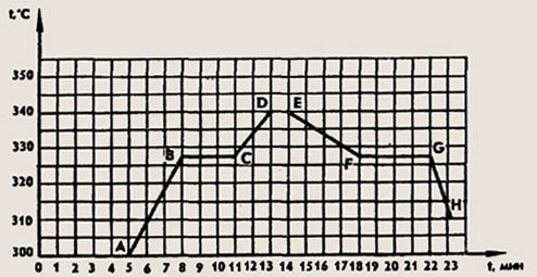 температуре —10 °С. Сосуд поставили на горелку, которая дает в равные промежутки