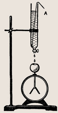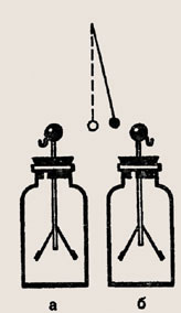 Вода капает в полый металлический шар, установленный на электроскопе (рис. 283). Как определить, каким знаком заряжает проводник воду в бюретке? (До опыта электроскоп не был заряжен.)